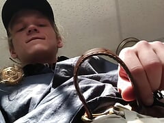 Youngster in white panties plays with himself, shoots a load in his undergarments