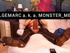 Huge horse cock dude from Belgium jerks off and shoots big cum