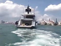 Mathieu Ferhati lets his big cock get some air on a boat off the French Riviera