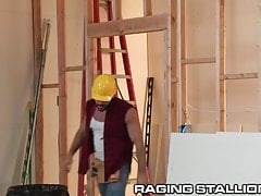 Hot action in the carpentry shop leads to a steamy threesome with the boss and a coworker