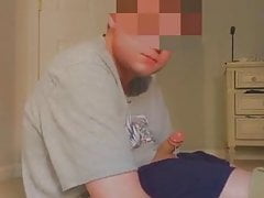 Pretty boy trains his boy-pussy with dildos and anal balls chain. He moaning and cumming om the floor