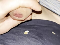 Highly ultra-kinky young boy puts his giant XXL sleek meatpipe out of his black cut-offs and fap
