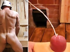 Sweaty builder Danny gets home all worked up and shoots a huge load into his Fleshlight - toy available for purchase!