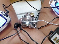 Chastity belt cumshot with electric massager
