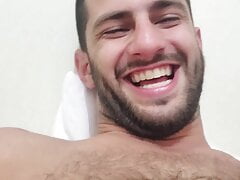 Tied-up guy shaved, locked in chastity by his dominant bearded man