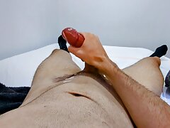 Guy jerking off his dick before bed