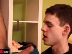 Superb POV moments show cute boy sucking cock and swallowing jizz