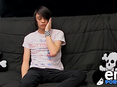 Emo rides dildo while stroking himself