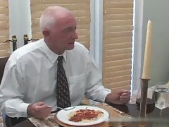 Senior male enjoys a romantic dinner and a good cock in his tight ass
