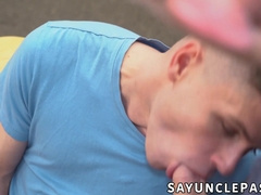 Younger guy takes hard daddy stick bareback