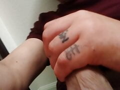 ALT AMATEURS - Tattooed unexperienced goth rock jock solo tugging his humungous schlong