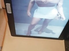 Playing with my hard big dick while watching porn on a laptop ends with an explosive orgasm