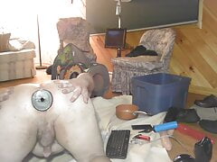Naughty BBC twink accidentally farts during live webcam session and enjoys anal play with a dildo