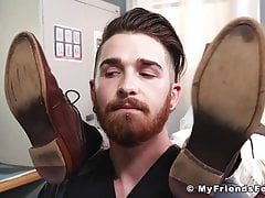 Bearded businesman hunk feet worship