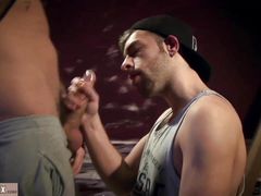 Hot muscle hunk Drew Dixon gets barebacked and filled with cum in intense gay gangbang