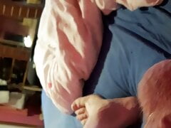 Ginger-haired on camera tugging one out.