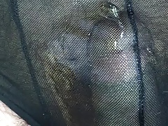 Hot sissy crossdresser femboy Sweet Lollipop in sexy golden lingerie with a thong.