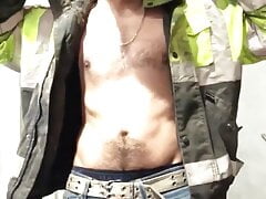 Huge hairy polar bear man has wild moments with his big balls and hands-free cum shots