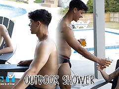 Nastytwinks - Outdoor Shower - Jay Angelo Takes A Shower Outside When Checks In On Him And Fun Ensues - Jordan Haze