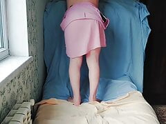 Jerking off on a dildo in horny lingerie