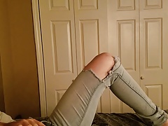 Attempting on elder Clothes & Spunking trio Times! Denim Torn! Abdomen Fetish Porno