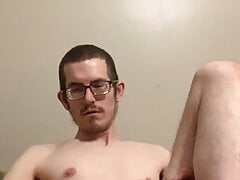 His legs spread, his hard cock bouncing back and forth, open and wide for his top, wh