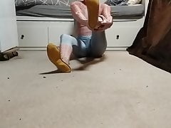 Stroking hard on bulge thru black lycra ( 1 of 2)