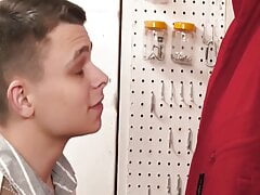 The twink slurps and gags on Jax Thirio's man meat before Jax makes his way inside To