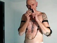 Munching my own jism, with nip clothespins, and pinning my pecs. Self SADISM & MASOCHISM