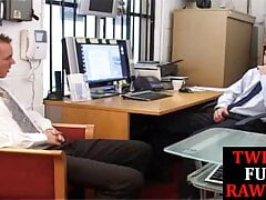A young mind-blowing boy jacks in the office and ejaculates noisily while no one is at work.