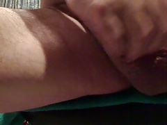 Oiled-up old guy rubbing his greasy dick