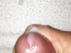 Compilation of 8 cumshots - uncut cock oozing with precum jerking off on webcam