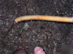 Naked male swallows warm jizz after he puts cock to work in outdoor scenes