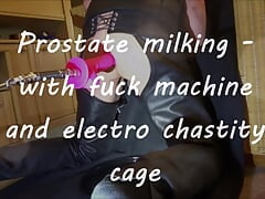 Hands-free climax on a homemade prostate fucking machine with plenty of dripping milk