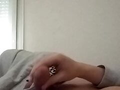 Bare stroking tiny hard-on jizm on me
