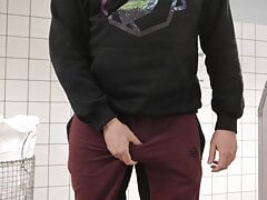 Self urinate and jizz in public rest room