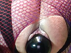 Panties with open crotch, stockings, cock rings: wild solo play and massive cumshots!