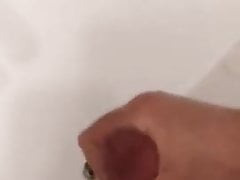 Felixproducer strokes his big cock in a public toilet, covering the sink and mirror with a massive load