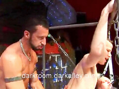 Submissed bareback by Arab master and Latino XXL with piss at the final in a sling