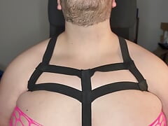 Playful office encounter: chubby bear enjoys a smooth transition from soft to hard, cumming in between.