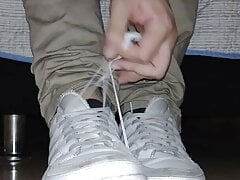 Nike fetishist strokes his cock while worshipping East Boys' feet and watching gay porn
