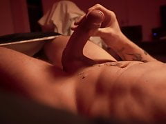 Masc tattooed lad solo jerk off to Jimmy Clay