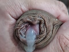 Femboy Rosethefoxxo enjoys a solo session, jerking off and spilling cum on his smooth femboy pussy