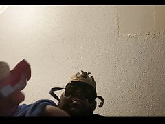 Young man puts his stepfather's underwear to the test with his massive manhood.