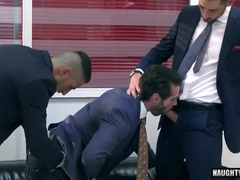 Tatted muscle guy dominates and pounds a restrained stranger with help from another man in intense fisting inferno