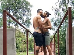 2 boys getting off in public toilet