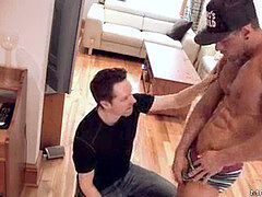 Two gay investigate buddies exchange sensitized touches that end with a hard horny ass fuck