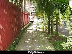 Insatiable Latino twink gets his tight ass rimmed and pounded bareback by a wild stud