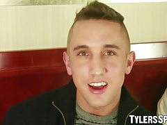 Young gay twink Rany jerks off his big cock solo and shoots a hot load for cash