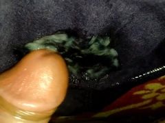 Roommates jerk off with each other's panties, cum on lingerie. Redhead guy shows off uncut cock